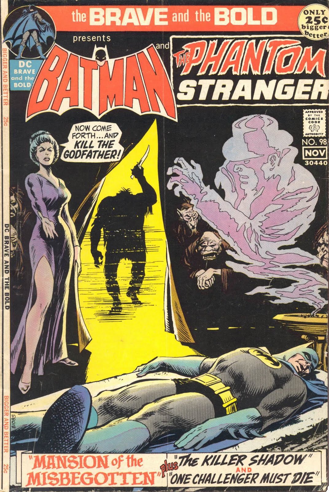 Behind this creepy Nick Cardy BRAVE AND BOLD cover (which manages to highlight the then-buzzword "Godfather") from 1971 lurks some really cool art by Jim Aparo, often described as the definitive artist for both BATMAN and THE PHANTOM STRANGER during that period. It's a shame that the story, MANSION OF THE MISBEGOTTEN is yet another "continuity be damned" classic by Bob "Zany" Haney!